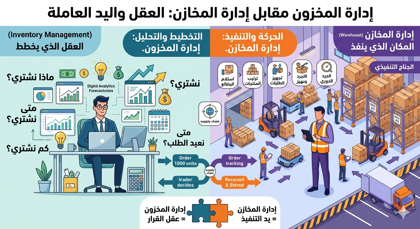 الفرق بين إدارة المخزون وإدارة المخازن | دليل شامل لفهم الفرق وأهميته في تحسين كفاءة الأعمال وسلاسل الإمداد