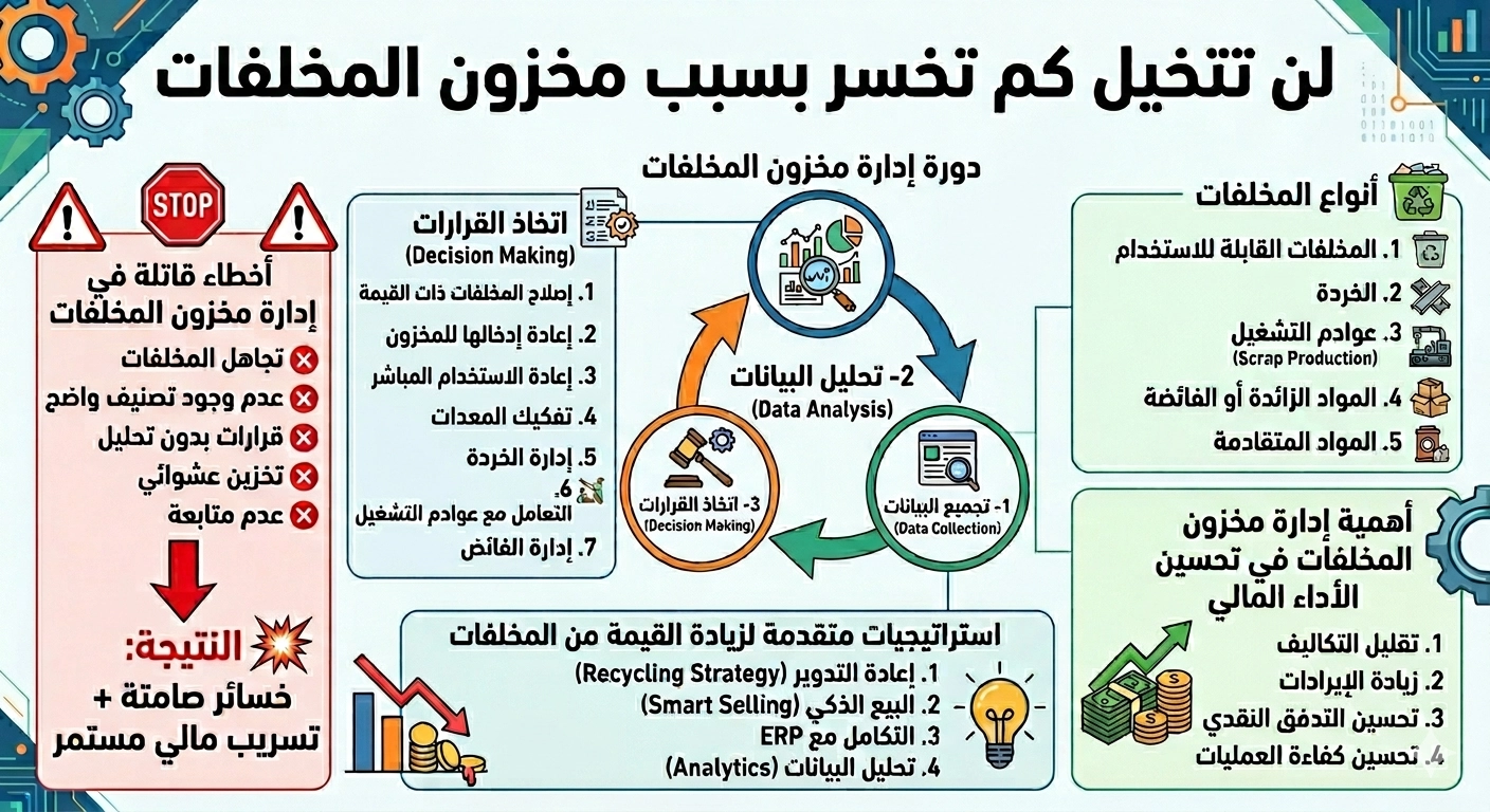 في عالم إدارة العمليات وسلاسل الإمداد، لا يمثل المخزون فقط المواد الخام أو المنتجات الجاهزة، بل يمتد ليشمل ما يُعرف بـ مخزون المخلفات، وهو أحد أكثر العناصر التي يتم تجاهلها رغم تأثيره المباشر على التكاليف والأرباح.